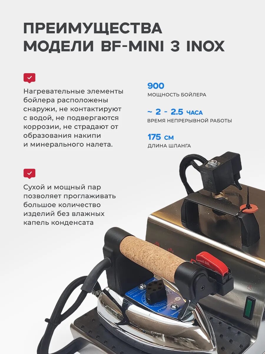 Парогенератор Bieffe «BF-MINI» 3 INOX 2.4 л, противокапельная система, серебристый: сравнение цен, характеристики, фото, актуальное наличие и цены.
