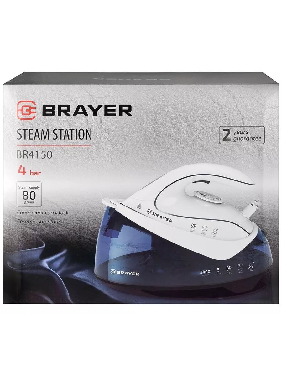 Купить Парогенератор BRAYER BR4150, 2400Вт, с вертикальным отпариванием, бело-синий с доставкой по всей России.