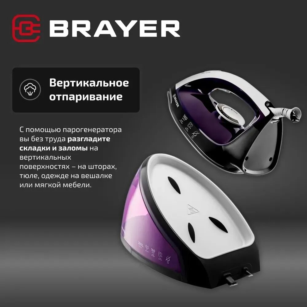 Купить Парогенератор BRAYER BR4152, 2800 Вт, пар 160 г/мин, керамическая подошва, самоочистка, антикапля, цвет фиолетовый с доставкой по всей России. Парогенератор BRAYER BR4152, 2800 Вт, пар 160 г/мин, керамическая подошва, самоочистка, антикапля, цвет фиолетовый: сравнение цен, характеристики, фото, актуальное наличие и цены.