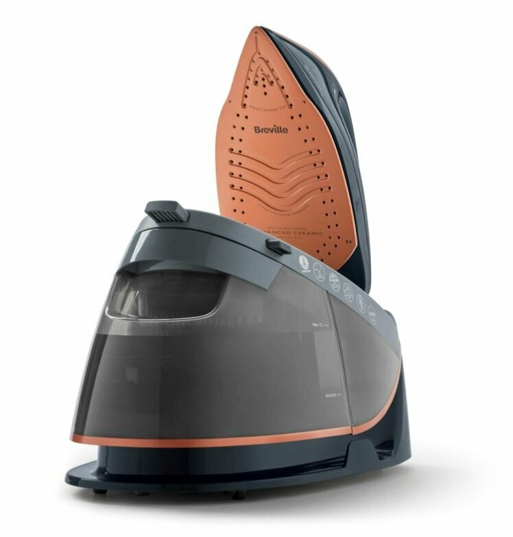 Паровая гладильная станция Breville PressXpress SoleTEMP, постоянная подача пара 115 г/мин, паровой утюг мощностью 2600 Вт с разнонаправленной подошвой, съемный резервуар для воды объемом 1,7 л, серый и розовое золото VIN411X: сравнение цен, характеристики, фото, актуальное наличие и цены.