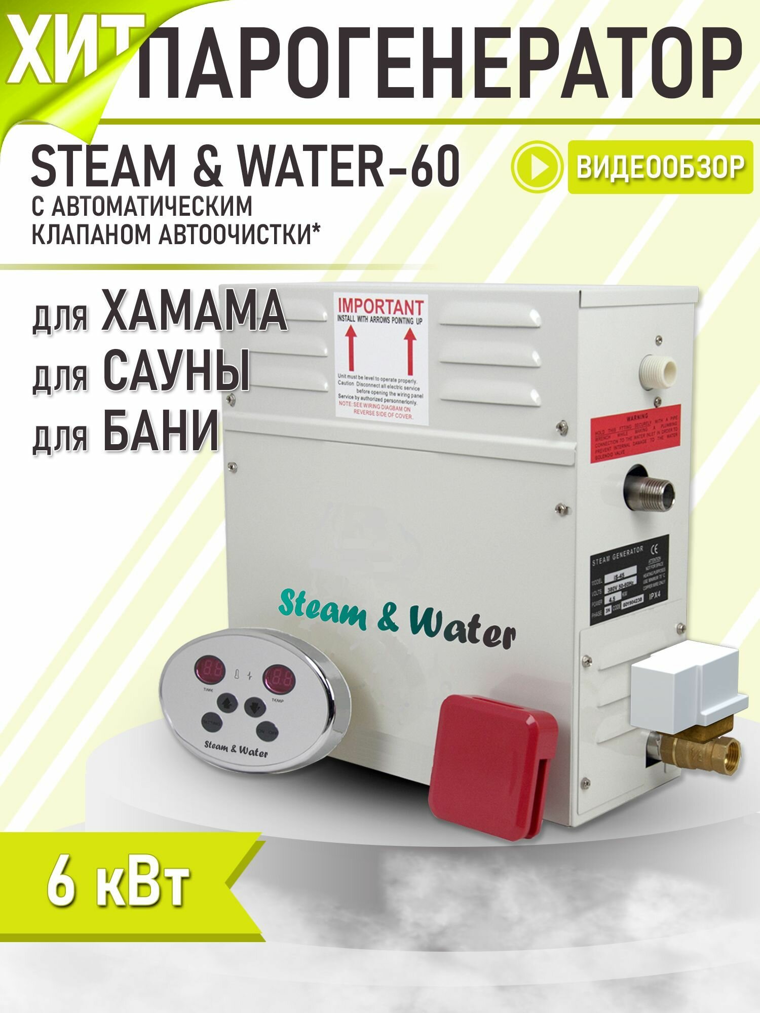 Парогенератор для бани, хамам, турецкой бани Steam & Water AVTO — 60 (6 кВт). Автоматический дренаж: сравнение цен, характеристики, фото, актуальное наличие и цены.