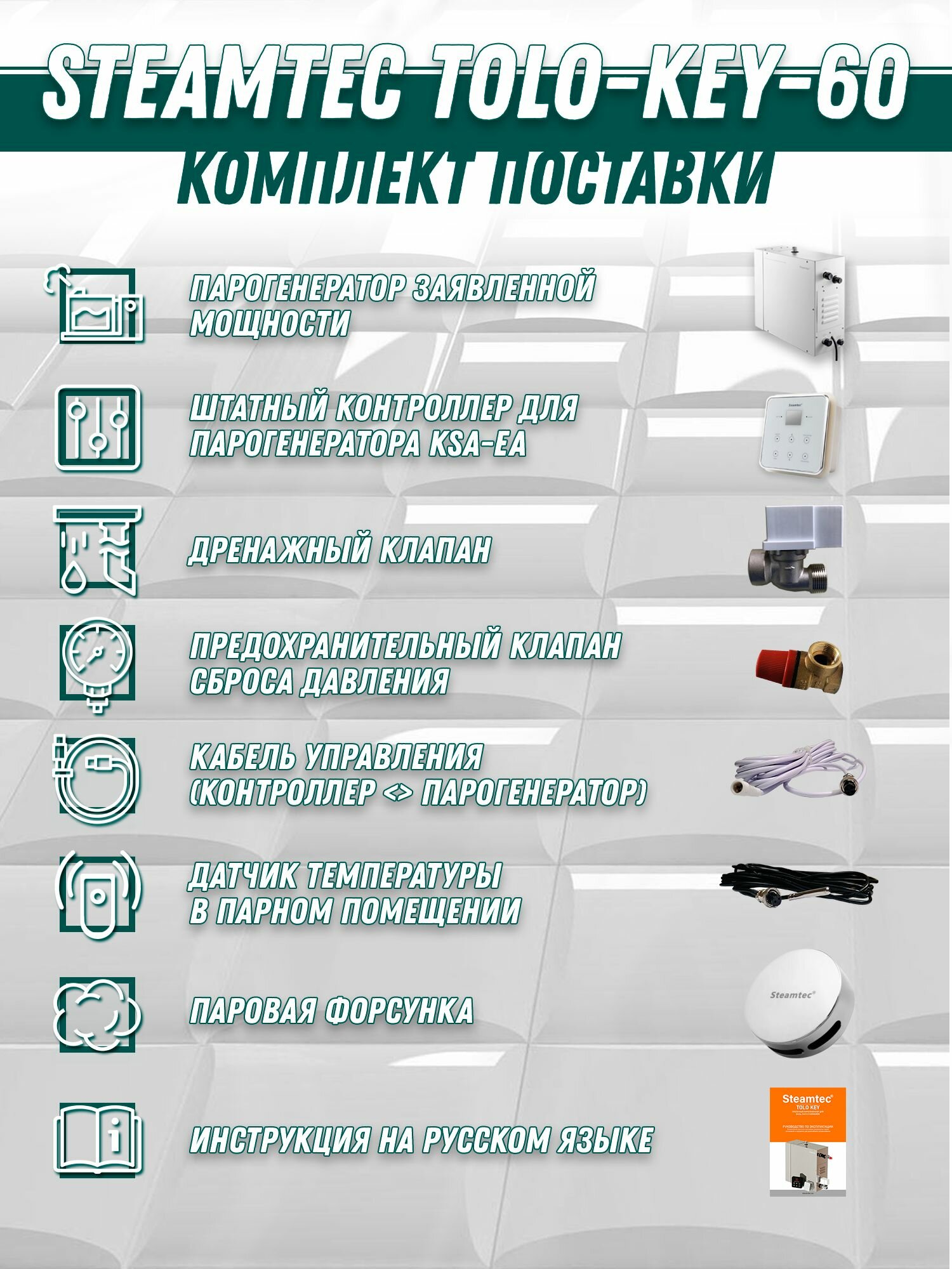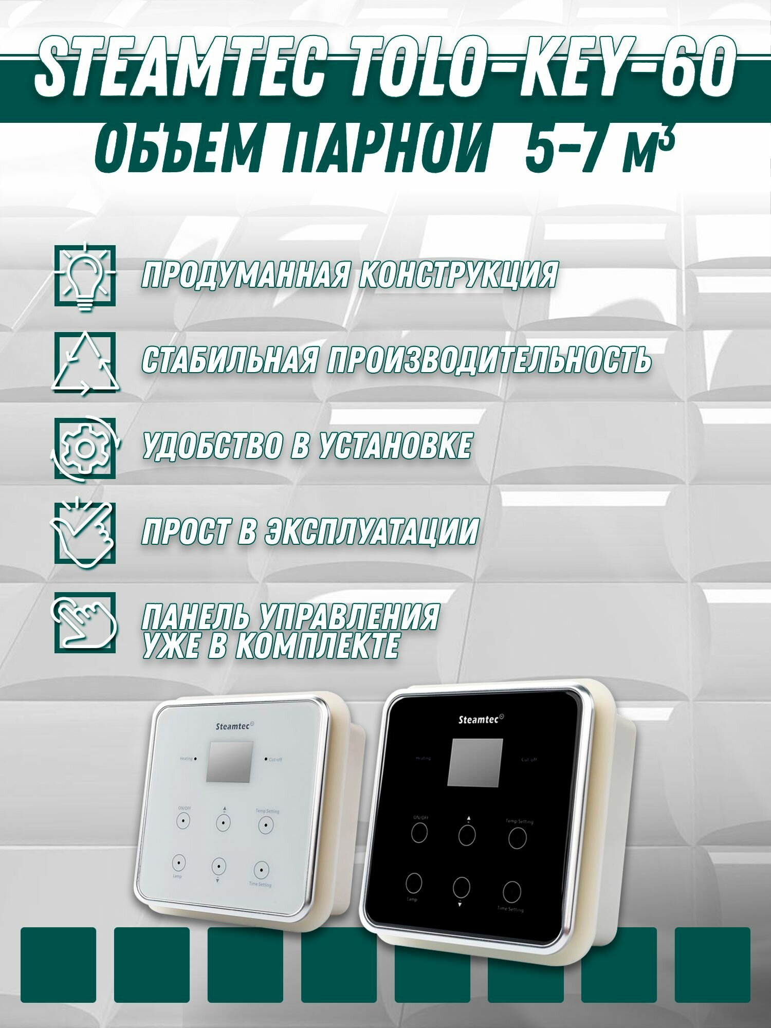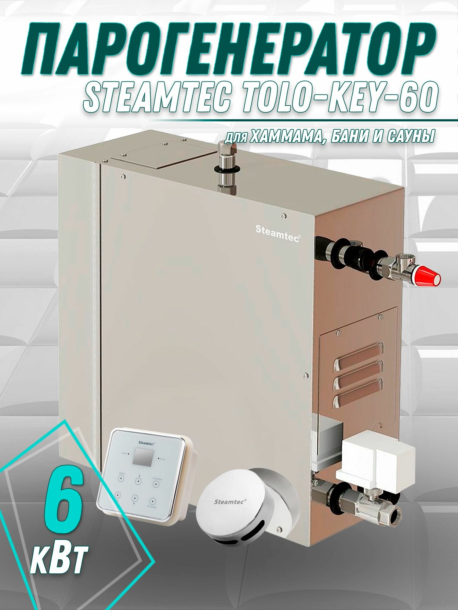 Парогенератор для хамама и турецкой бани Steamtec TOLO-60-KEY (6 Квт), 220В (объем парной 5-7 м3) - влагостойкий модуль управления