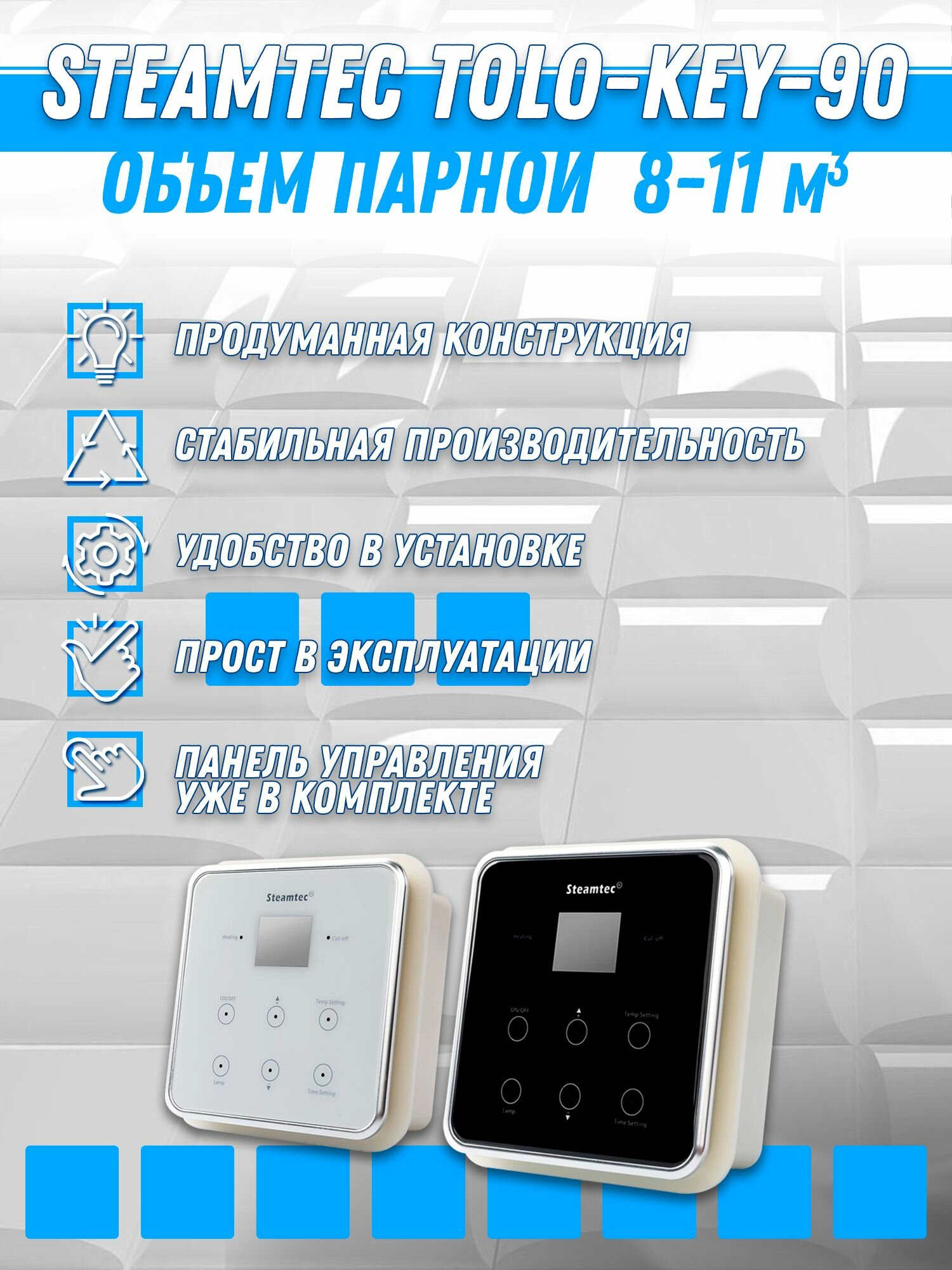 Купить Парогенератор Steamtec TOLO-90-KEY (9 Квт), 380В (объем парной 9-11 м3) Автоматический дренаж с доставкой по всей России.