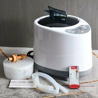 Мощность - 1,5 Кв. Парогенератор накопительного типа с цифровым табло и пультом управления, с объемом бака 3,0 литра, подходит для небольшой кедровой бочки (фитобочки) или паровой портативной сауны для квартиры. Благодаря компактным размерам и простым функциям, парогенератор очень удобен. Его использование рекомендуется как для частного, так и для коммерческого использования. Способ применения: Размещаем фитоемкость в бочку, ставим ее в тарелочку с краями, чтобы конденсат не оседал на дне бочки, а собирался в одном месте, для удобства дальнейшего его удаления. В фитоемкость кладем фитосбор и плотно закрываем крышку, заливаем в бак парогенератора воду, не более 2,8л, Включаем парогенератор, Устанавливаем максимальную мощность (9), она при полном нагреве будет равна 48-50С. Устанавливаем таймер на 30минут, либо он автоматически выставится на 45 минут (по желанию, можно изменить установленное время или преждевременно выключить парогенератор), через 15 минут можно садиться в бочку и принимать процедуру. Примерное время принятия процедуры 10-15 минут. КомплектацияПарогенератор, пульт управления, фитоприемник, соединительные силиконовые трубки