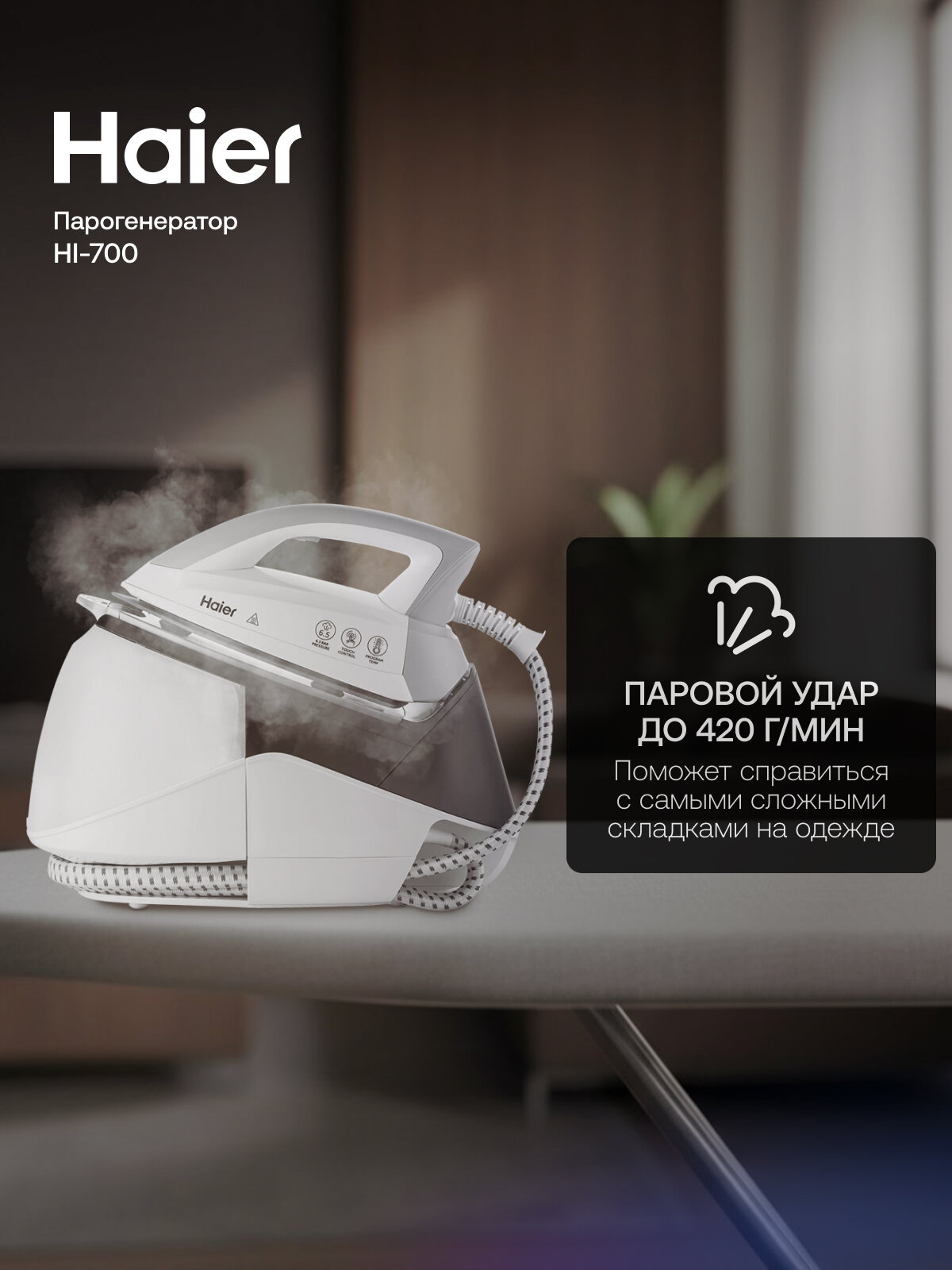 Парогенератор Haier HI-700, белый/серый, 2600 Вт, вертикальное отпаривание