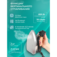 Подошва утюга парогенератора изготовлена из толстого алюминия, что гарантирует прочность и долговечность. Эргономичный дизайн и компактные размеры позволяют легко использовать устройство в домашних условиях.