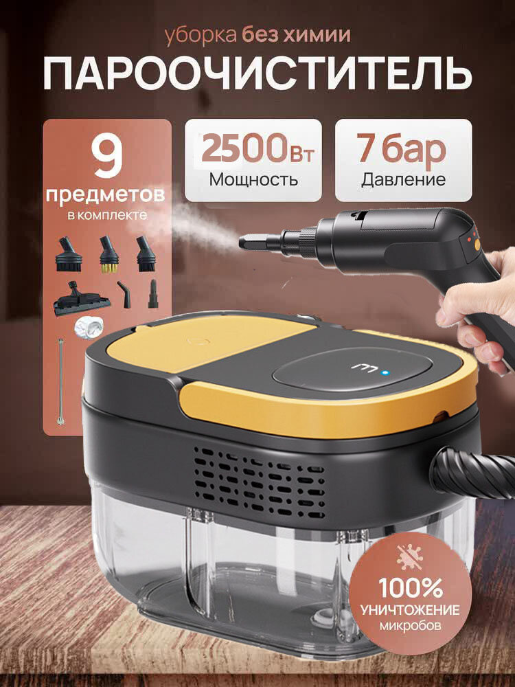 Купить Пароочиститель 5000 Вт, для уборки дома мощный, Пароочиститель профессиональный, 5000Вт, 8 насадок с доставкой по всей России.
