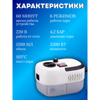 | Дополнительные функции | глажка белья, горизонтальное отпаривание, использование моющего средства, косметическое применение, регулировка подачи пара |