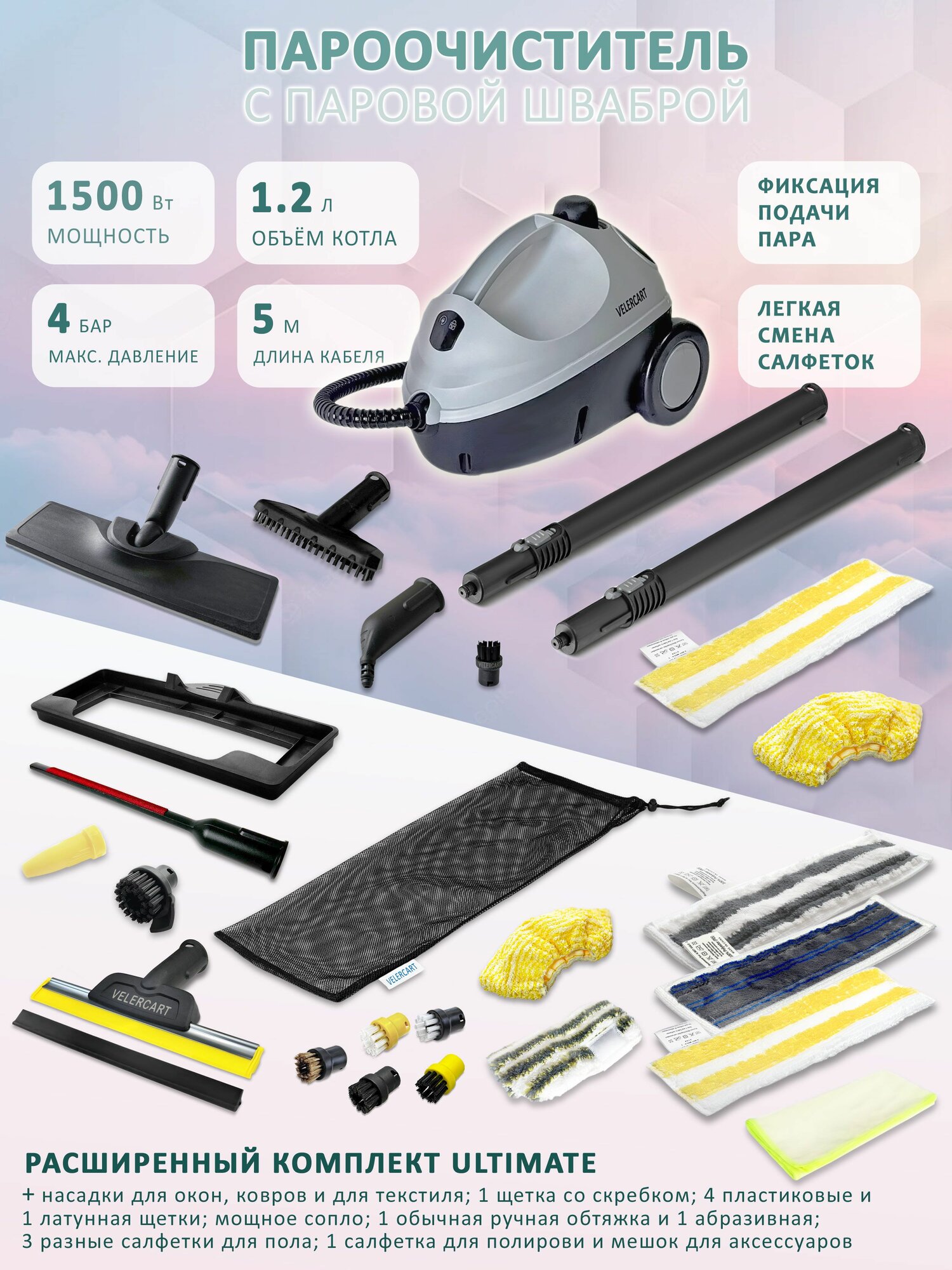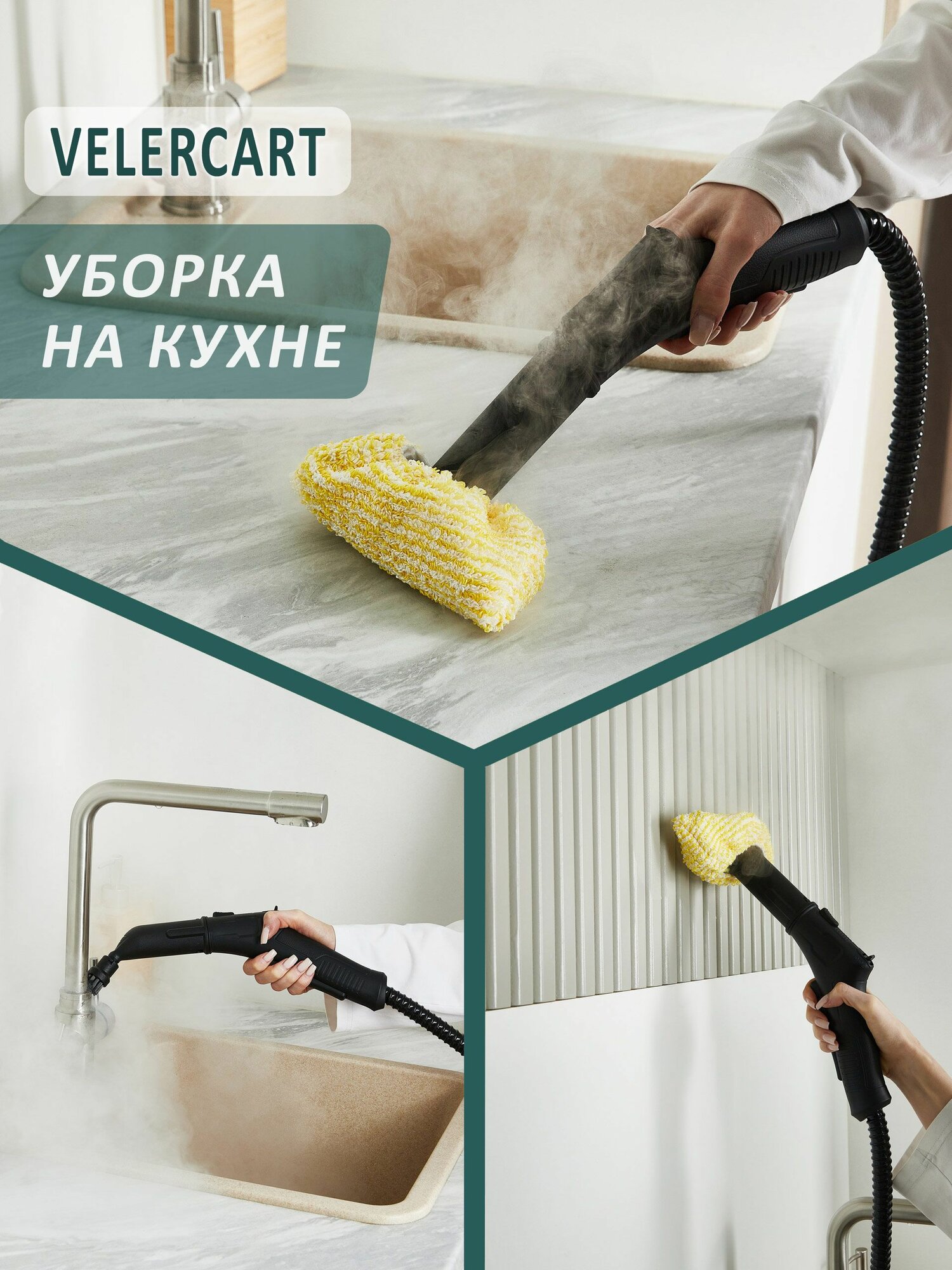 Пароочиститель VELERCART V2 обеспечивает уборку без применения бытовой химии и имеет универсальные возможности. Аппарат выдаёт горячий пар под давлением в 4 бара и при тщательной уборке твердых поверхностей уничтожаются до 99,99% всех распространенных в быту бактерий.