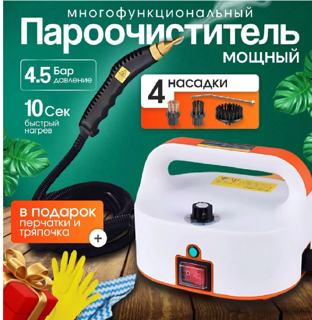 Пароочиститель для дома Steam Cleaner #3 Orange, 5 Бар, 1500Вт с 4 насадками в комплекте, белый-оранжевый: сравнение цен, характеристики, фото, актуальное наличие и цены.