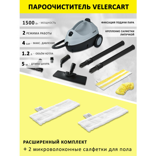 Пароочиститель VELERCART V2 обеспечивает уборку без применения бытовой химии и имеет универсальные возможности. Аппарат выдаёт горячий пар под давлением в 4 бара и при тщательной уборке твердых поверхностей уничтожаются до 99,99% всех распространенных в быту бактерий.
