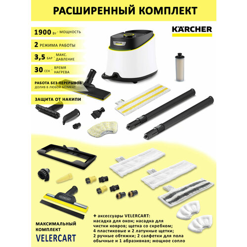 Пароочиститель для дома Karcher SC 3 Deluxe EasyFix готов к работе всего лишь за 30 секунд и при чистке твердых поверхностей уничтожает до 99,99 % вирусов и распространенных в быту бактерий. Пароочиститель создаёт давление в 3,5 бар и подаёт пар с интенсивностью 40 гр/мин в постоянном режиме и 100 гр/мин кратковременно, при паровом ударе.
