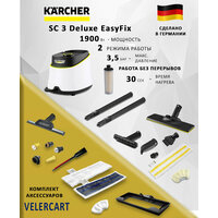 Купить Пароочиститель для дома Karcher SC 3 Deluxe EasyFix, белый + аксессуары VELERCART в комплектации Ultimate с доставкой по всей России.