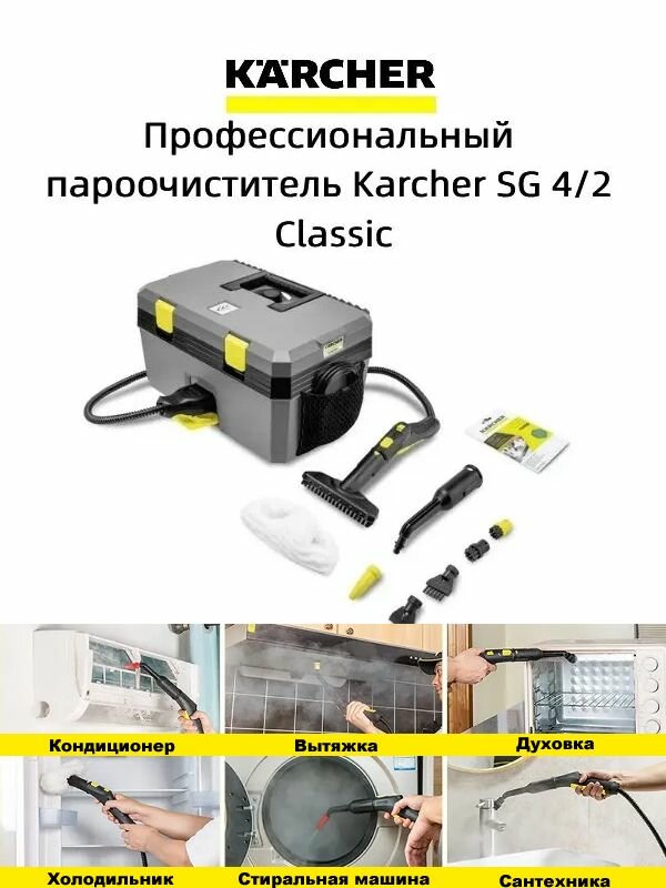 Купить Пароочиститель Karcher SG 4/2 Classic 2050 Вт, насадки — 7 шт с доставкой по всей России. Пароочиститель Karcher SG 4/2 Classic 2050 Вт, насадки — 7 шт: сравнение цен, характеристики, фото, актуальное наличие и цены.