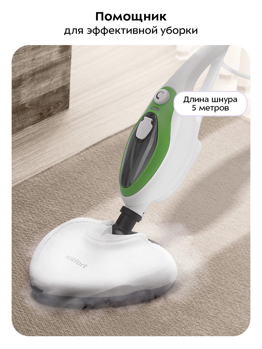 Купить Паровая швабра Kitfort КТ-1004-2, зелёная с доставкой по всей России.