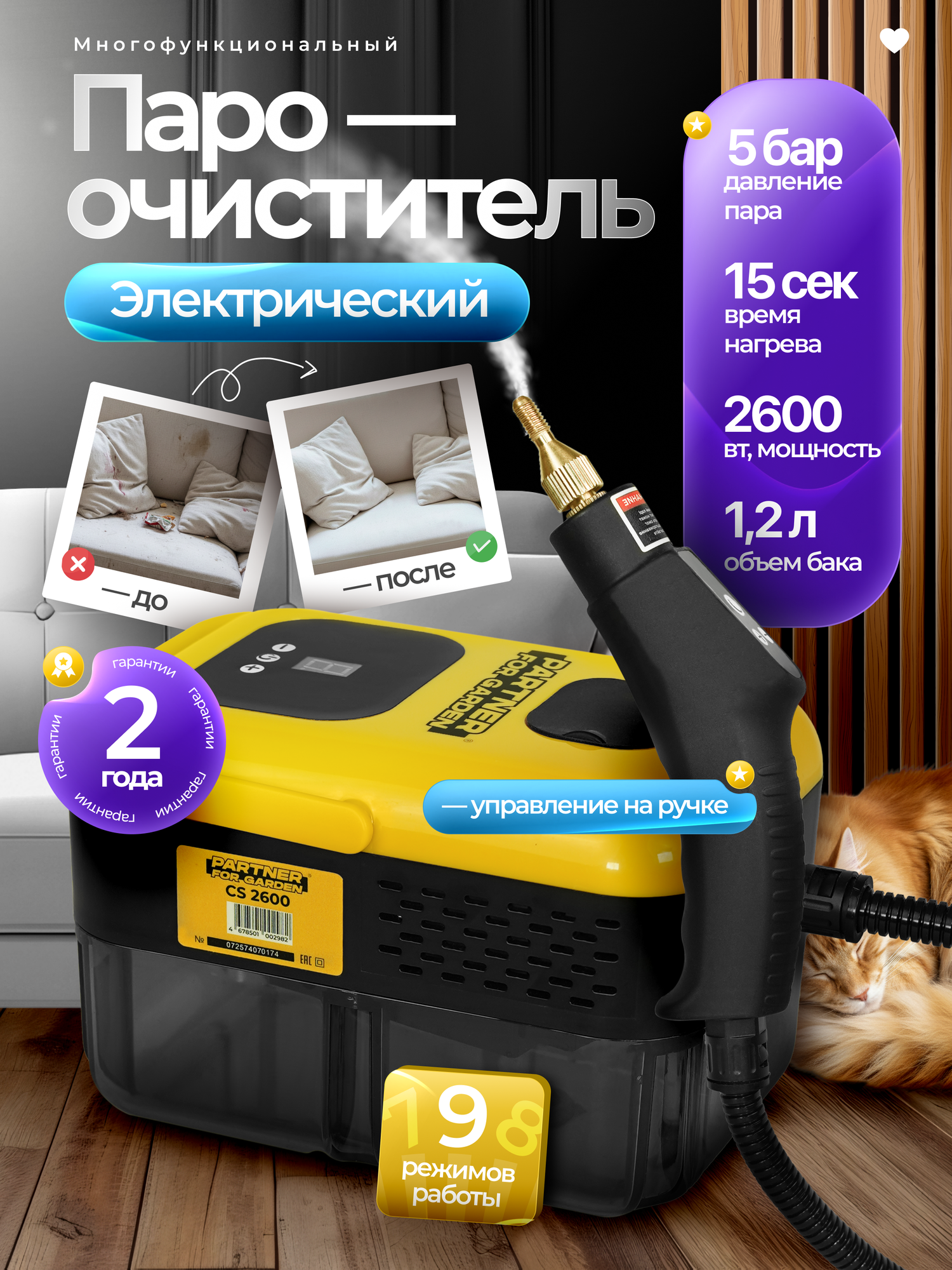 Пароочиститель Partner For Garden CS2600, давление 5 бар, мощность 2500 Вт, бак 1,2 л: сравнение цен, характеристики, фото, актуальное наличие и цены.