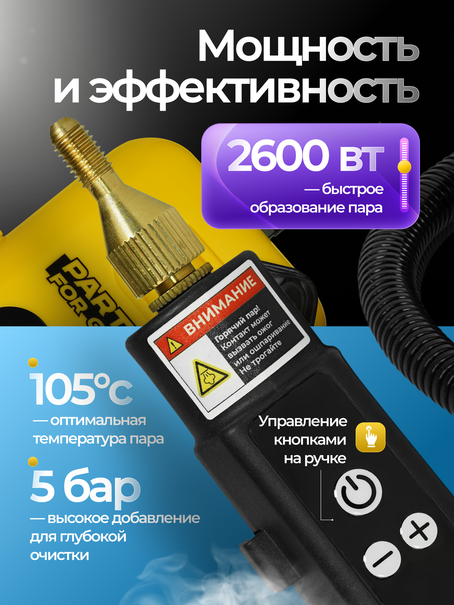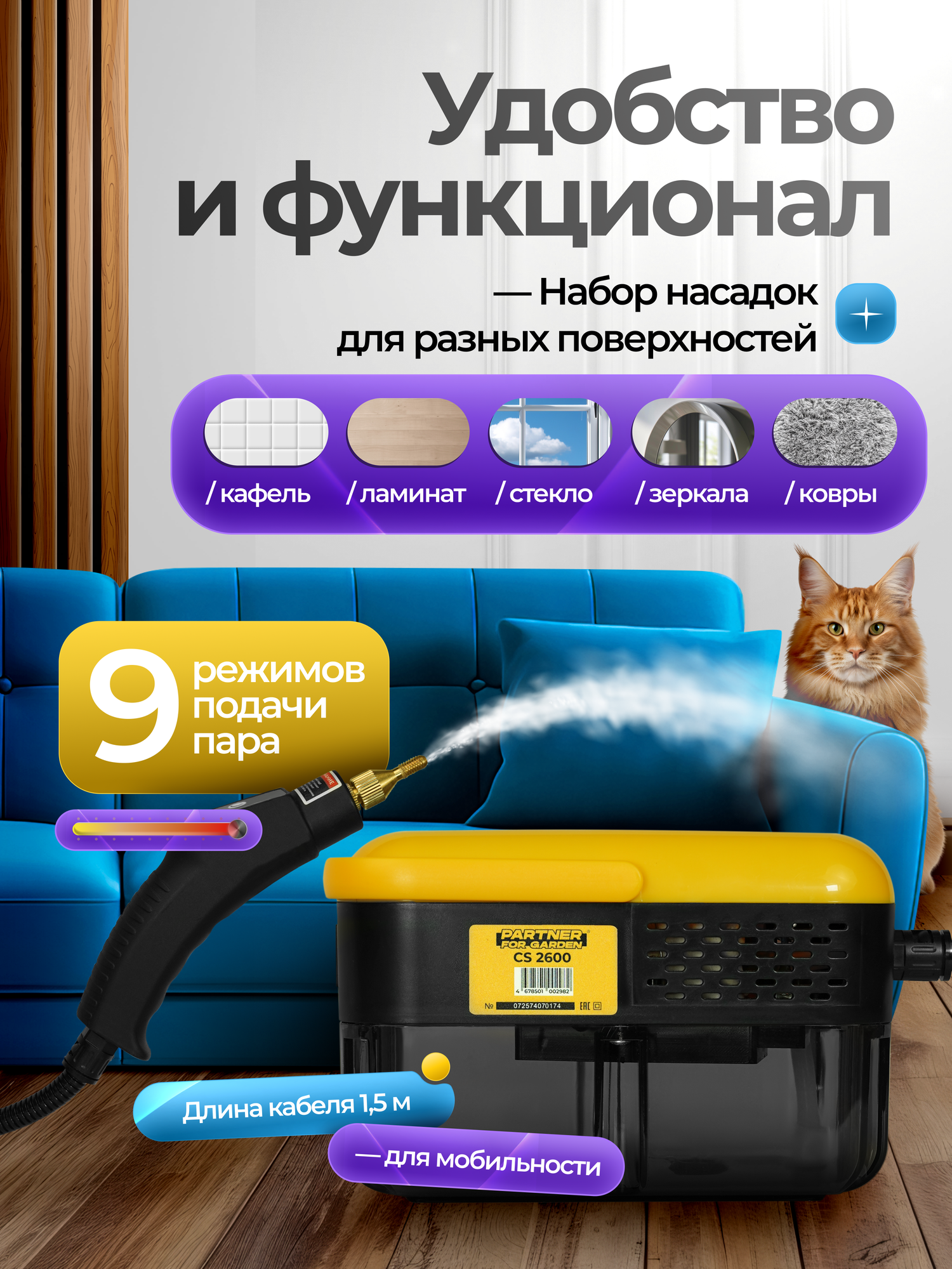 Купить Пароочиститель Partner For Garden CS2600, давление 5 бар, мощность 2500 Вт, бак 1,2 л с доставкой по всей России.