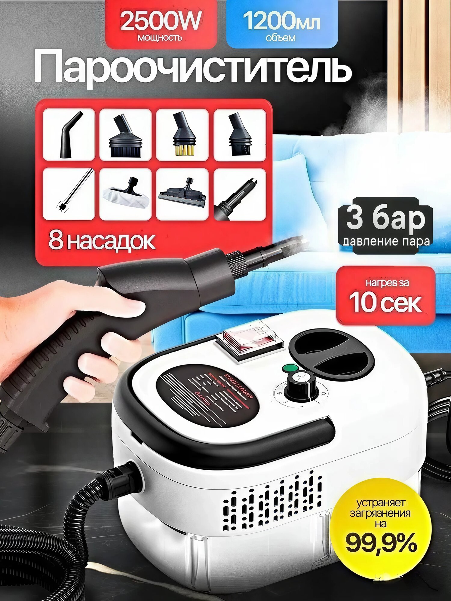 Купить Пароочиститель SAVLARO, 2500Вт, до 60 мин работы без перерыва, 8 насадок с доставкой по всей России. Пароочиститель SAVLARO, 2500Вт, до 60 мин работы без перерыва, 8 насадок: сравнение цен, характеристики, фото, актуальное наличие и цены.