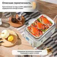 Электрическая пароварка для приготовления пищи BUYDEEM G553 приготовит овощи и другие продукты в одно касание! Компактная цифровая многофункциональная пароварка объединяет в себе множество функций: пароварку, форму для тушения, йогуртницу, подходит для продуктов детского питания и дезинфекции посуды. С тремя интеллектуальными программами для приготовления в одно касание она просто создана для всестороннего удовлетворения потребностей семьи! Приготовление на пару на 40% эффективнее стандартного метода готовки. Это достигается благодаря отличной герметичности скороварки, сокращает время готовки и сохраняет питательность и свежесть продуктов. Готовьте овощи, морепродукты, рыбу, пельмени, манты, мясо и другие любимые вами блюда. Благодаря большой емкости, в ней можно готовить рыбу целиком на пару, не отрезая голову и хвост. Мультиварка подходит для блюд из риса, небольших порций супа. После приготовления пароварка электрическая маленькая автоматически поддерживает температуру 85C в течение 6 часов. Подходит для ферментации йогурта на водяной бане при поддержании температуры 40C. Функция программируемого запуска очень удобна. Просто запрограммируйте таймер, и ваше блюдо будет готово к указанному вами времени. При таком режиме еда может оставаться теплой до 18 часов. В приборе применена функция автоматического отключения. При низком уровне воды мультиварка приостанавливает работу и предлагает добавить ее. При отсутствии жидкости питание автоматически отключается. Конструкция поддона для сбора конденсата устроена так, что соки от приготавливаемой пищи не попадают в резервуар. Это позволяет использовать воду несколько раз. Прибор сделан таким образом, что при извлечении посуды с готовыми продуктами невозможно обжечься о нагревательные элементы мультиварки. Предусмотрен отдельный отсек для подачи воды. Просто откройте крышку, чтобы наполнить его водой, которая будет стекать в основание. Для определения уровня жидкости на корпусе расположено специальное окошко. Больше нет необходимости снимать резервуар, просто наблюдайте за окошком. Функциональность и легкий вес пароварки не оставит вас равнодушными. Она позволяет сохранить питательность и свежесть продуктов, обеспечивая при этом высокую скорость приготовления. А ее компактная конструкция не занимает много места на кухне. Прибор изготовлен из сертифицированных безопасных и долговечных материалов, и будет радовать вас долгие годы! Техника Байдим — это элегантный и функциональный аксессуар, который станет отличным выбором и добавит уюта в каждый дом.