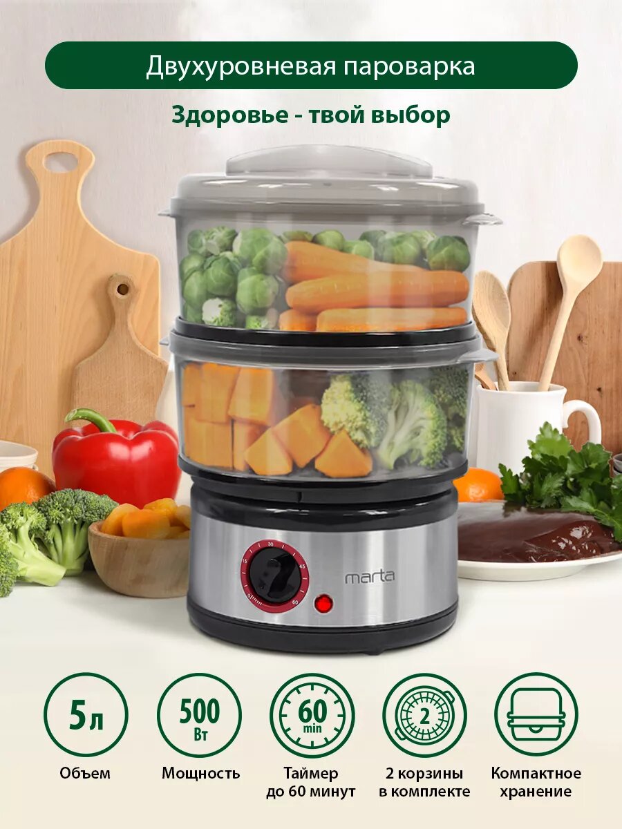 Купить Пароварка MARTA MT-FS1910A, нержавеющая сталь, механическое управление с доставкой по всей России. Пароварка MARTA MT-FS1910A, нержавеющая сталь, механическое управление: сравнение цен, характеристики, фото, актуальное наличие и цены.