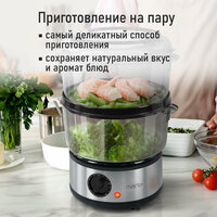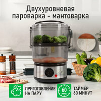 легко разберётесь Пользоваться этой моделью очень просто: у неё всего один механический поворотный регулятор. С его помощью вы включите устройство и установите время приготовления (до 60 минут). Световой индикатор сигнализирует о том, что пароварка работает. Ёмкости изготовлены из прозрачного пластика, это даст возможность контролировать процесс.