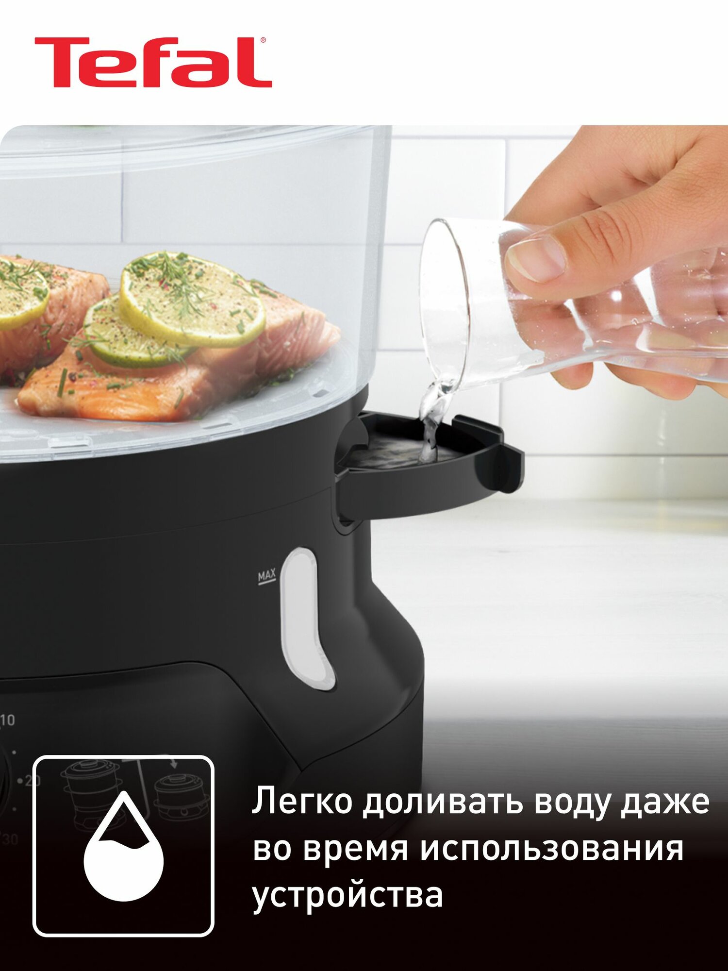 Откройте для себя блюда, приготовленные без масла и жира с компактной пароваркой Minicompact Steam Cooker от Tefal!