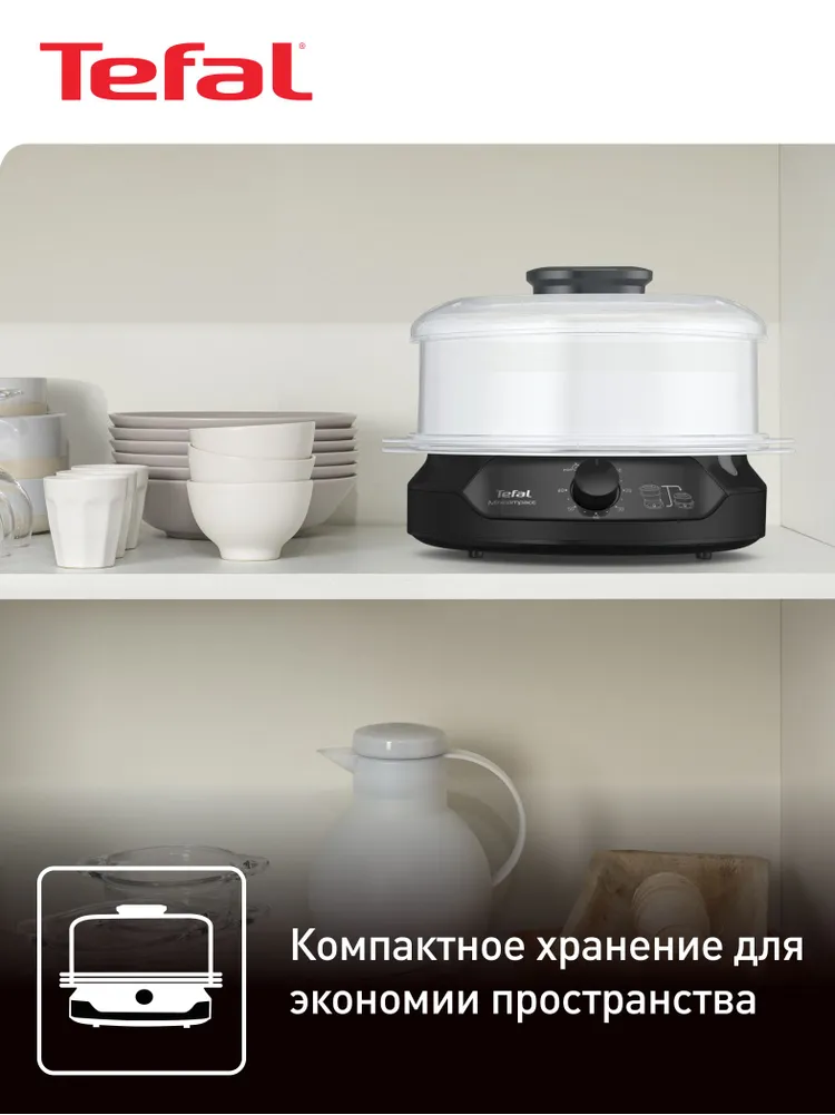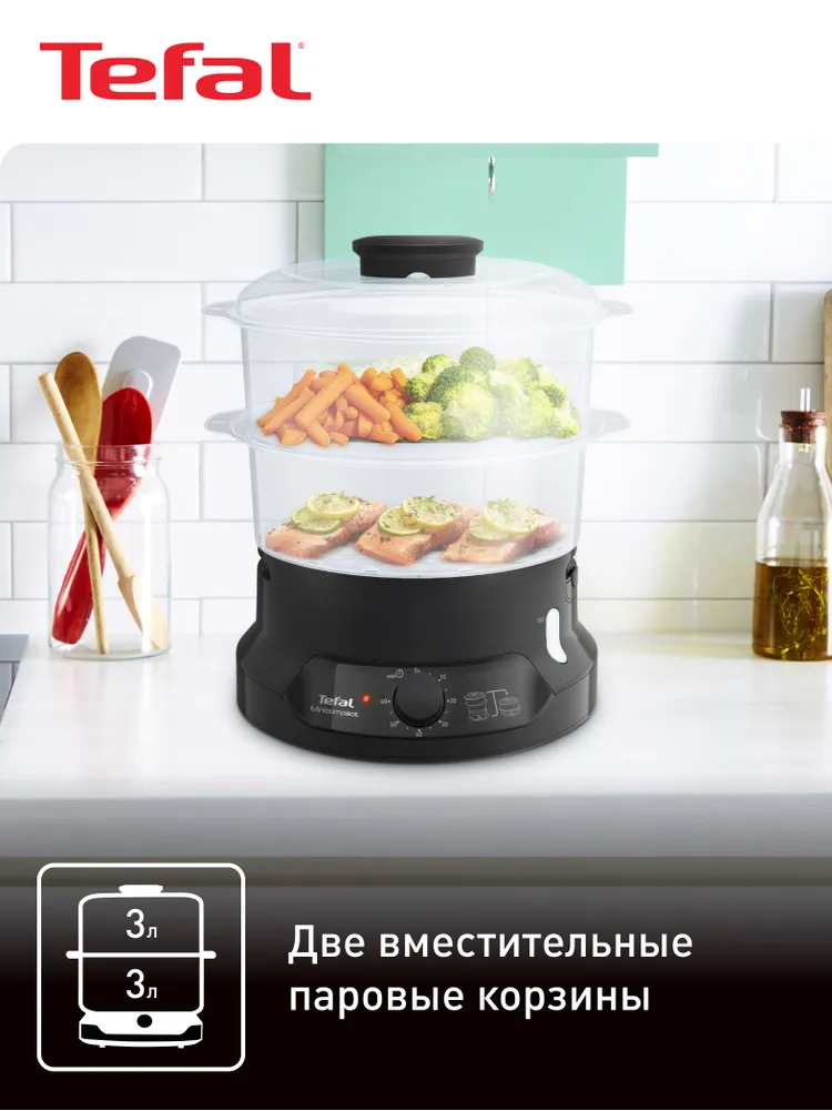 Пароварка Tefal Minicompact VC139810, с таймером, индикатором уровня воды, 800 Вт, черная: сравнение цен, характеристики, фото, актуальное наличие и цены.