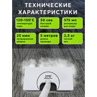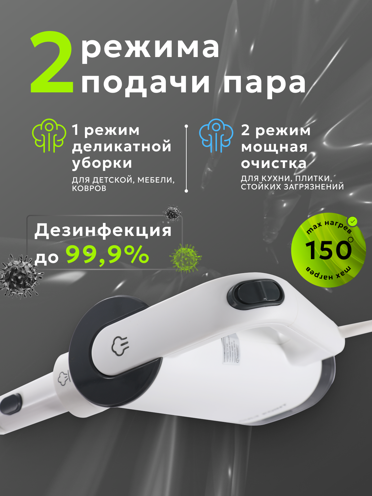 Паровая швабра, для мытья полов, для уборки, ручная, с насадками, белая