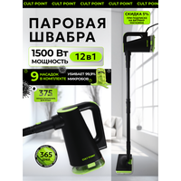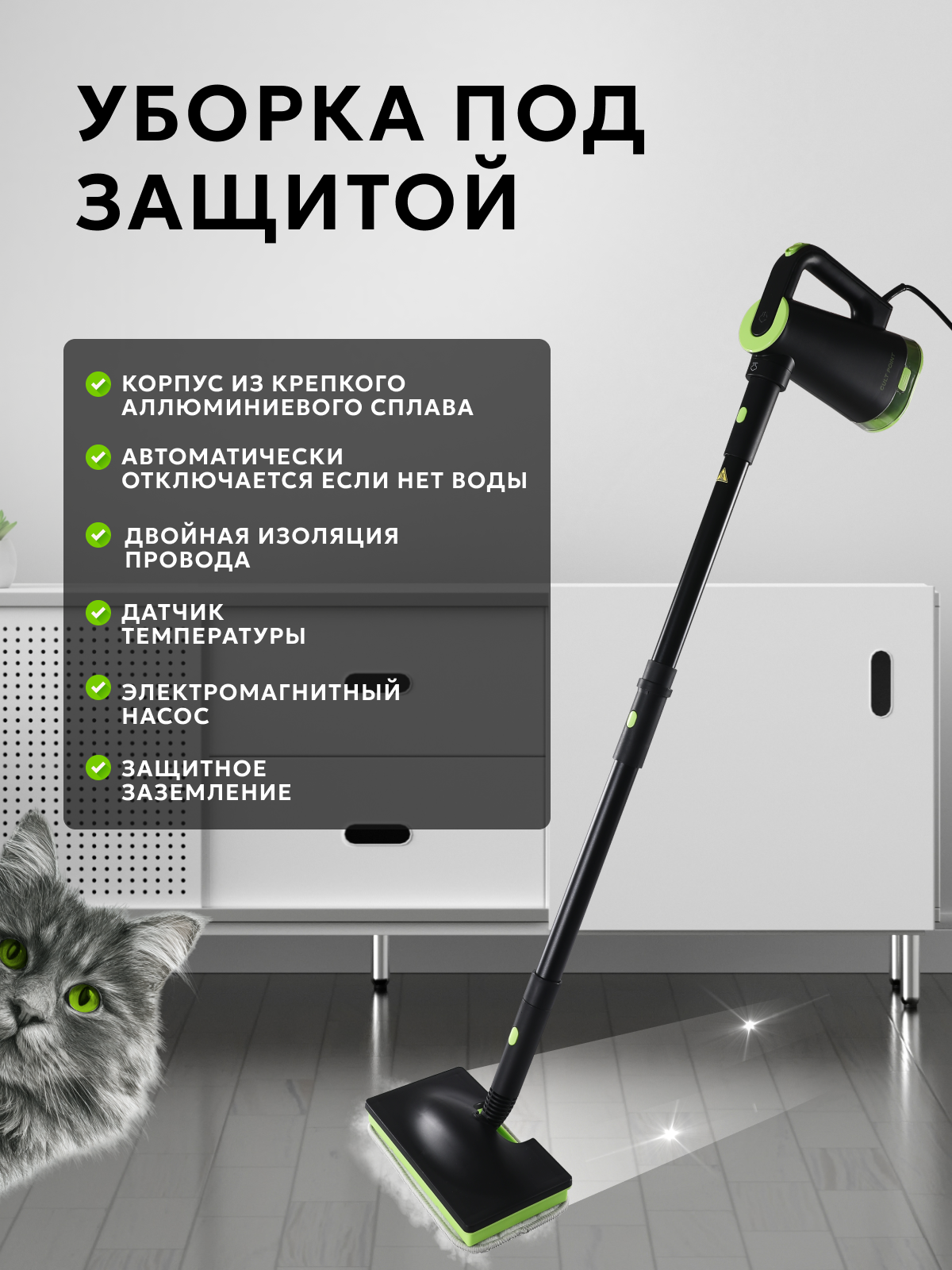 Паровая швабра, для мытья полов, для уборки, ручная, с насадками, черная