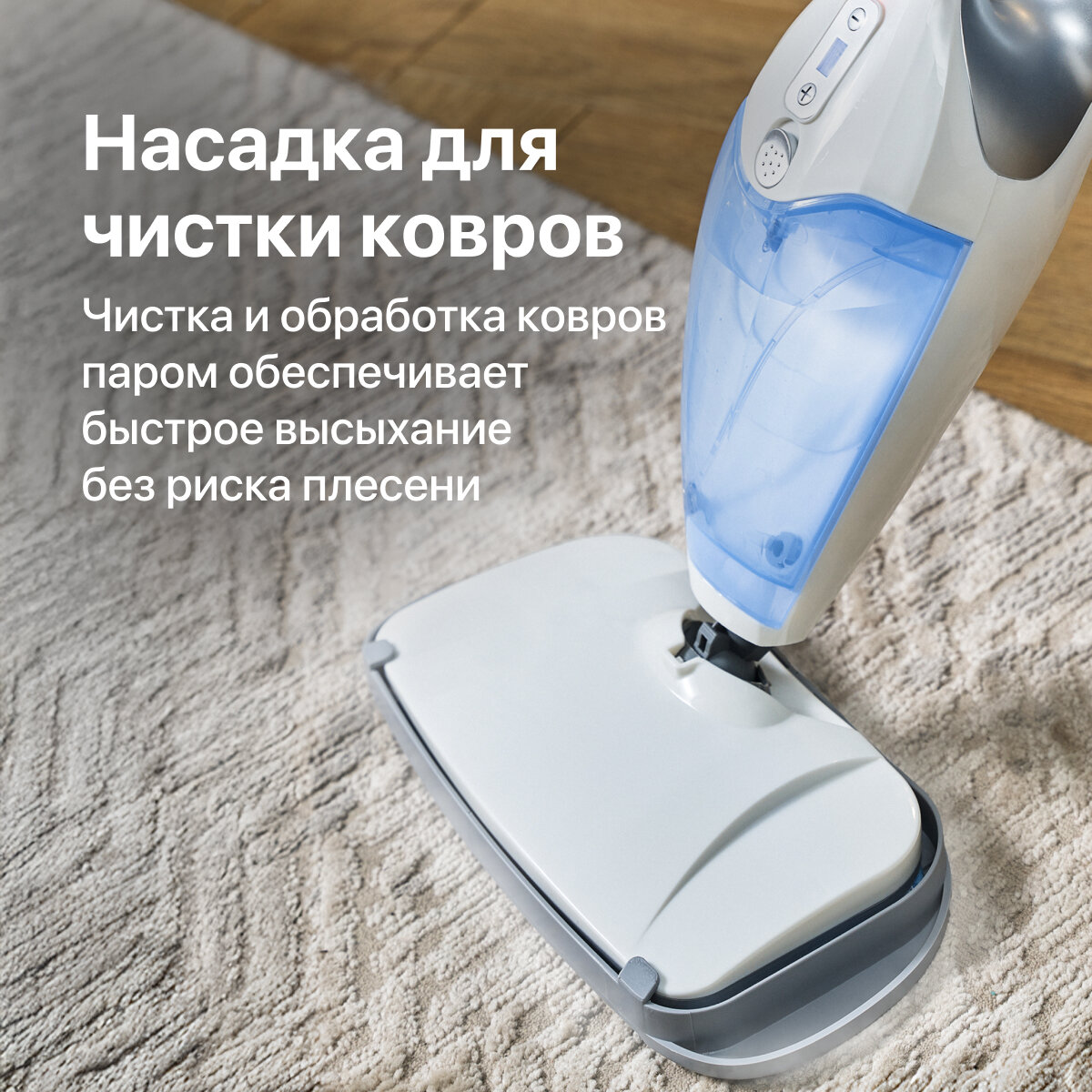 Температура пара достигает 149 градусов, что позволяет эффективно удалять пятна и грязь с любых поверхностей. Благодаря регулировке длины телескопической трубы и возможности использовать швабру в ручном режиме, уборка становится еще более удобной и эффективной.
