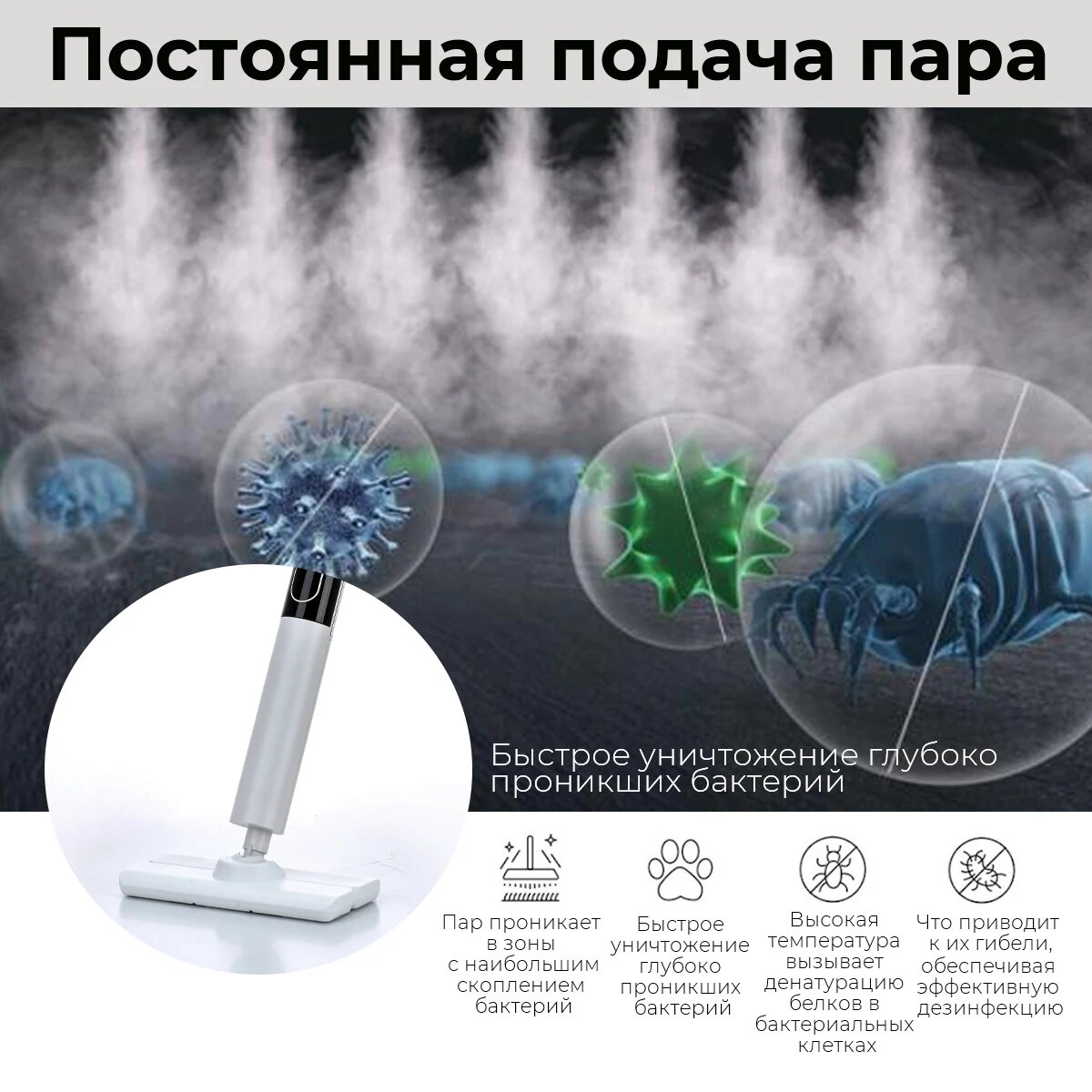 Паровая швабра KaringBee HD-TB506 Plus с подачей пара 28 г/мин, баком 350 мл и температурой нагрева до 160 °C для глубокой уборки помещений: сравнение цен, характеристики, фото, актуальное наличие и цены.