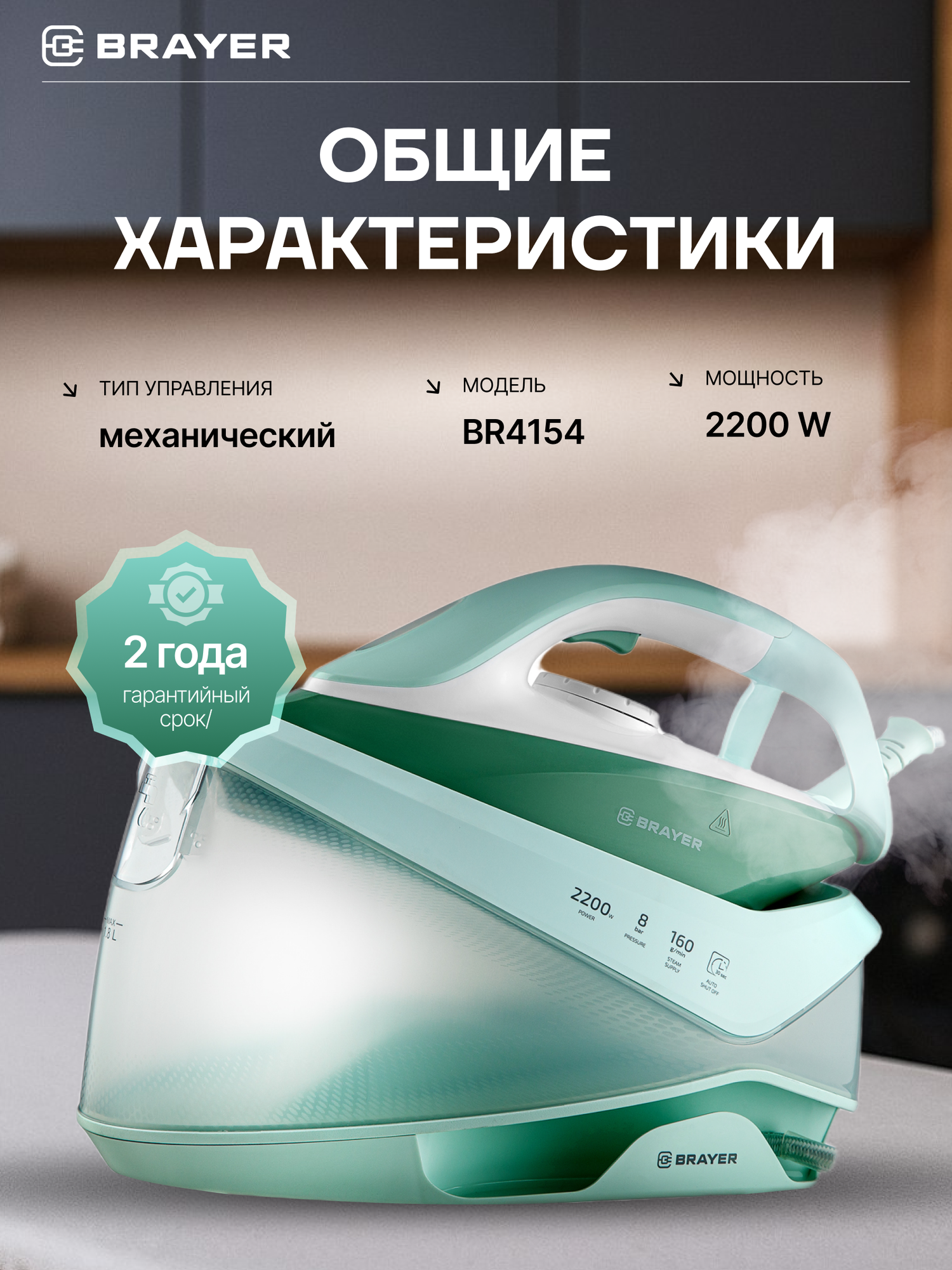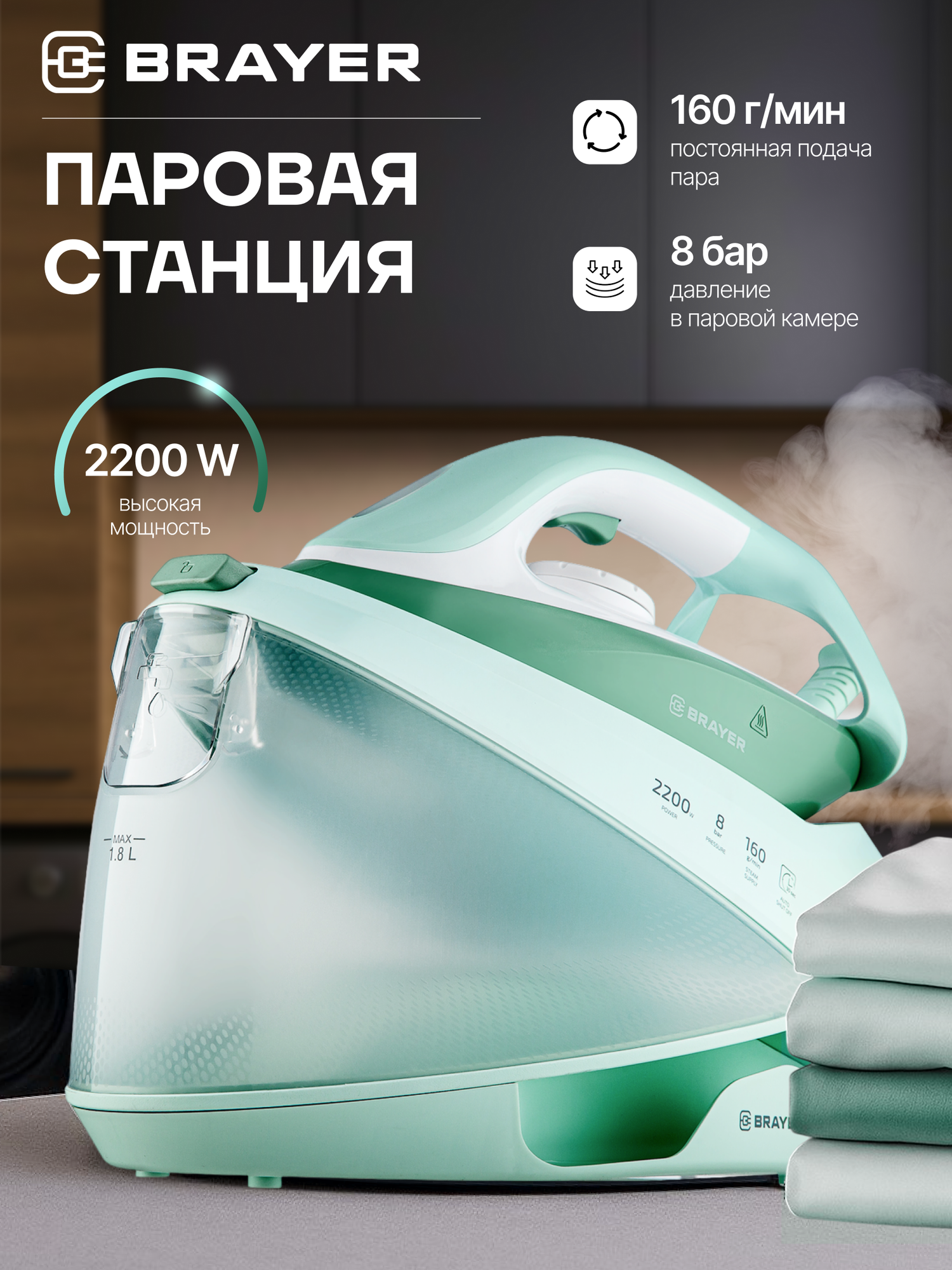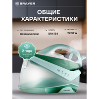 Паровая станция, парогенератор BRAYER BR4154, 2200Вт, керамика,8бар, постоянный 160г/мин, макс 480г/мин, 1,2л, бирюзовый: сравнение цен, характеристики, фото, актуальное наличие и цены.