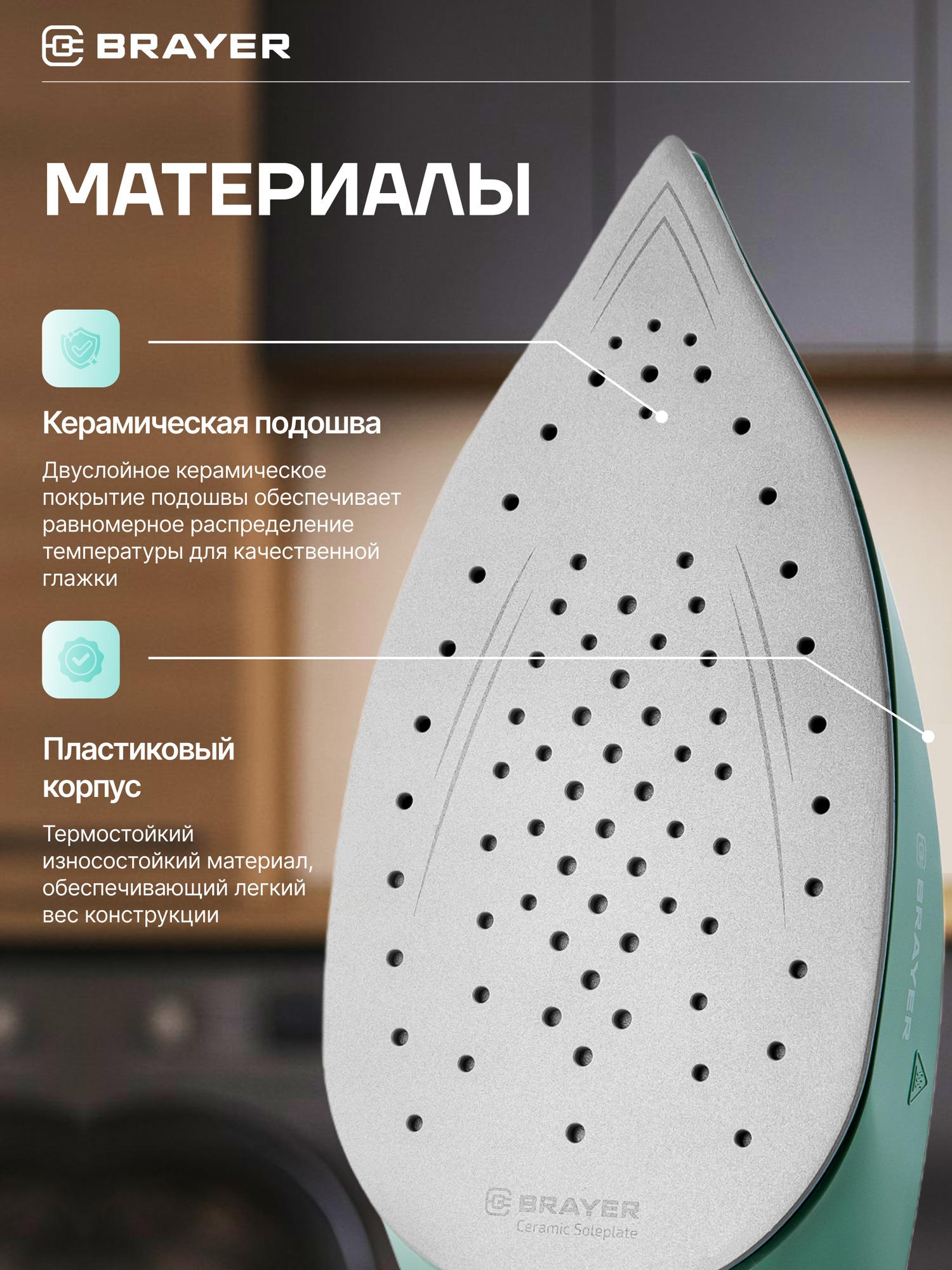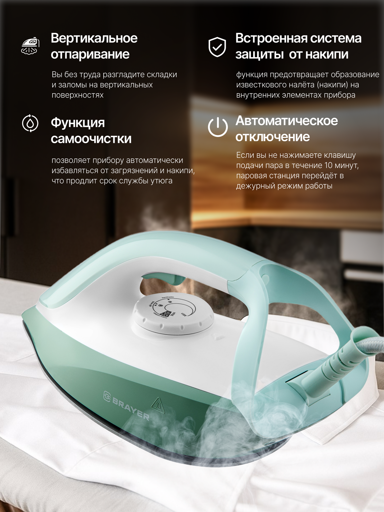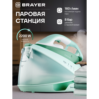Купить Паровая станция, парогенератор BRAYER BR4154, 2200Вт, керамика,8бар, постоянный 160г/мин, макс 480г/мин, 1,2л, бирюзовый с доставкой по всей России.
