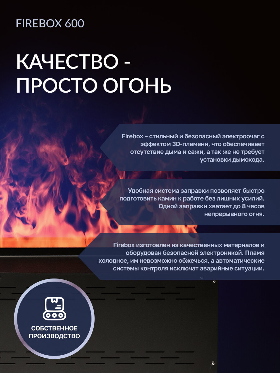 Купить Паровой электрический камин FIREBOX 600 с эффектом 3D пламени с доставкой по всей России. Паровой электрический камин FIREBOX 600 с эффектом 3D пламени: сравнение цен, характеристики, фото, актуальное наличие и цены.