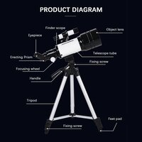 Паровой рефлекторный телескоп 70мм с большим отверстием, фокусное расстояние 300мм, для ночного наблюдения и дневного использования, включая штатив и фильтр для Луны: сравнение цен, характеристики, фото, актуальное наличие и цены.
