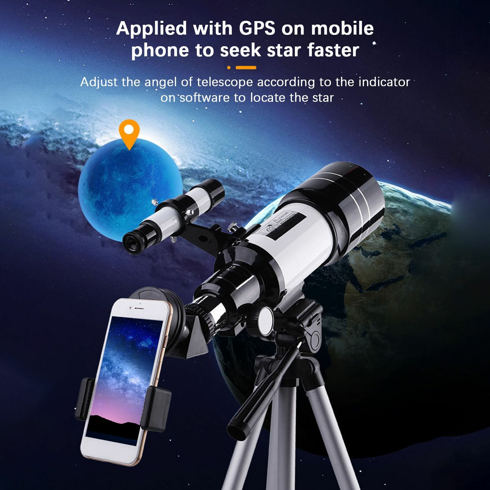 Купить Паровой рефлекторный телескоп 70мм с большим отверстием, фокусное расстояние 300мм, для ночного наблюдения и дневного использования, включая штатив и фильтр для Луны с доставкой по всей России.