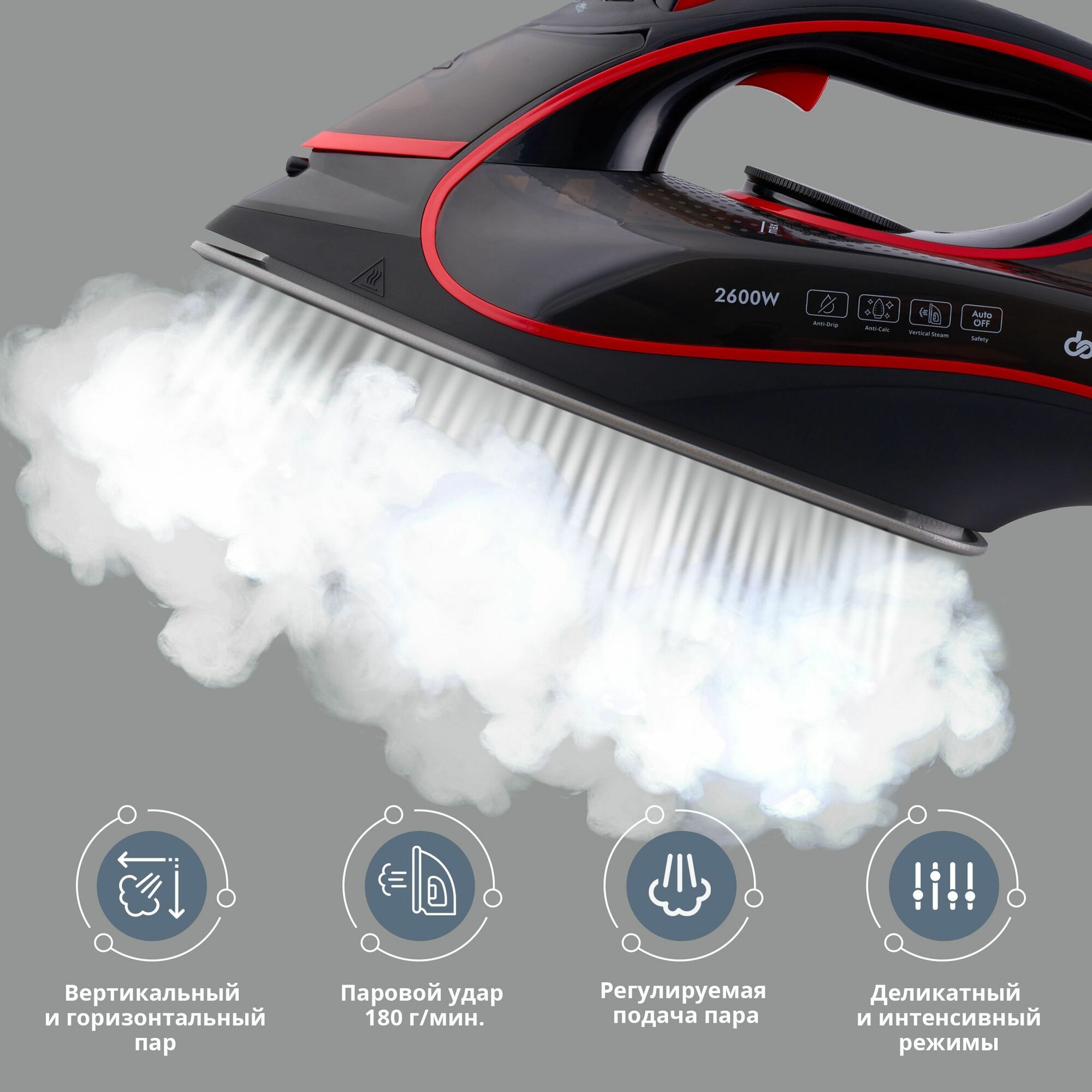 Паровой утюг Domfy DSC-EI606, авто-выключение, 2600Вт черный/красный: сравнение цен, характеристики, фото, актуальное наличие и цены.
