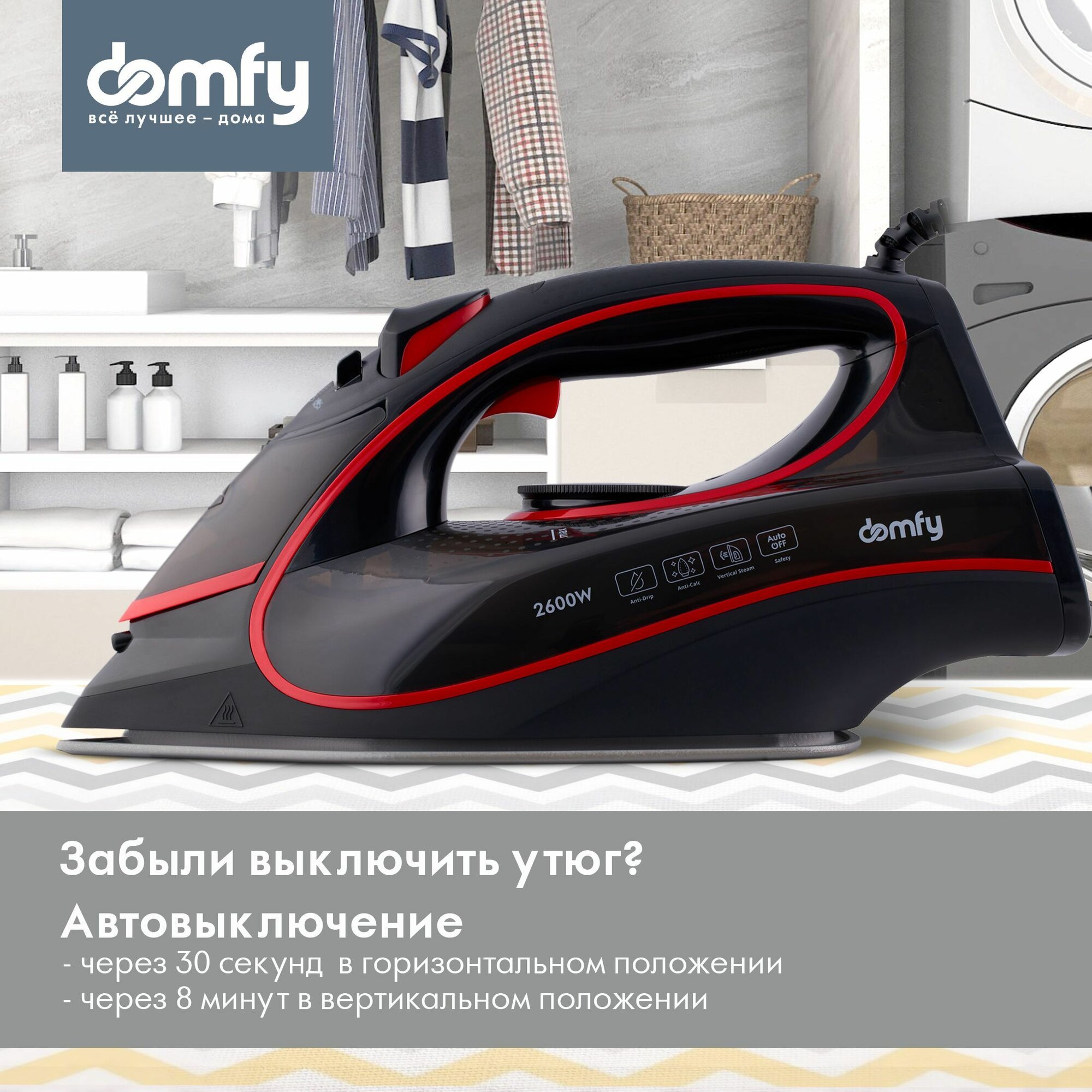 Купить Паровой утюг Domfy DSC-EI606, авто-выключение, 2600Вт черный/красный с доставкой по всей России.