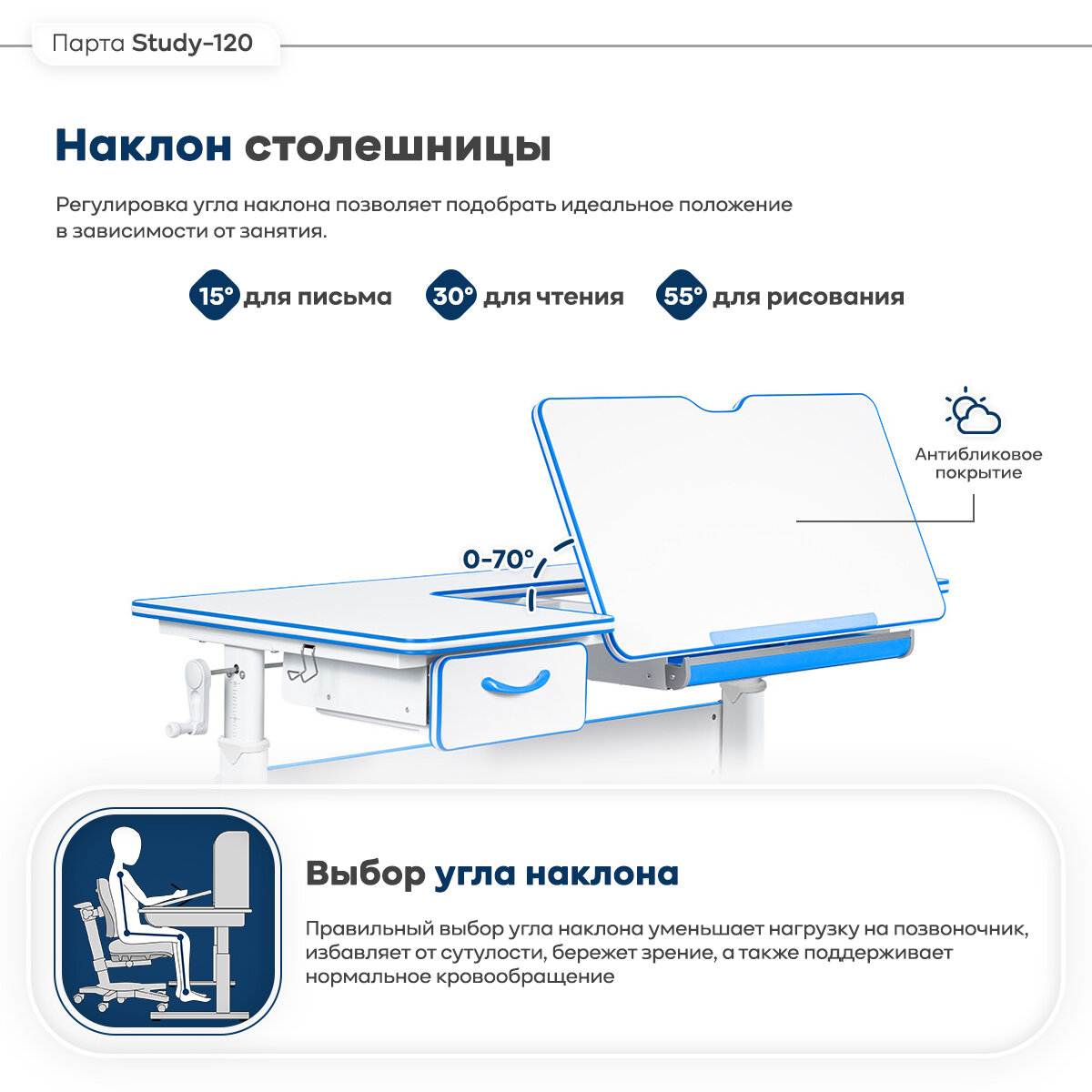 Купить Парта Anatomica Study-120 белый/голубой с доставкой по всей России. Парта Anatomica Study-120 белый/голубой: сравнение цен, характеристики, фото, актуальное наличие и цены.