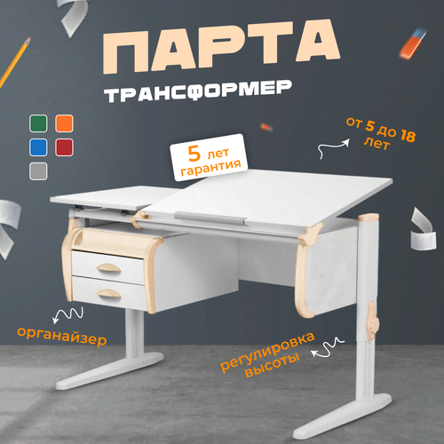 Парта растущая дэми СУТ-25-03 с тумбой, размер 120х55х81,5 см цвет ЛДСП белая, накладки бежевые, ноги белые: сравнение цен, характеристики, фото, актуальное наличие и цены.