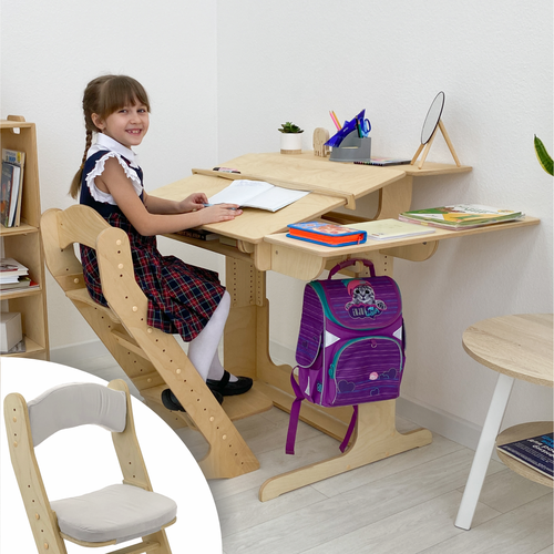 Парта для школьника, растущая парта и растущий стул, с подушкой, комплект, окрашен маслом: сравнение цен, характеристики, фото, актуальное наличие и цены.