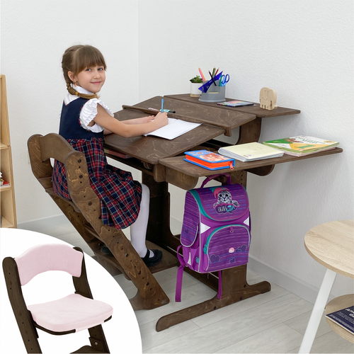 Парта для школьника, растущая парта и растущий стул, с подушкой, комплект, окрашен маслом