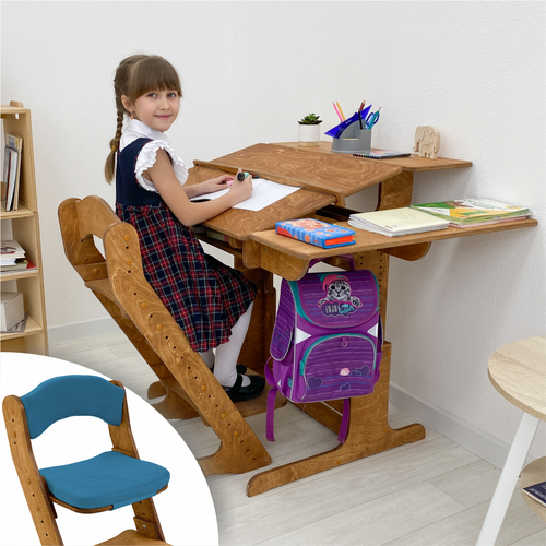 Парта для школьника, растущая парта и растущий стул, с подушкой, комплект, окрашен маслом
