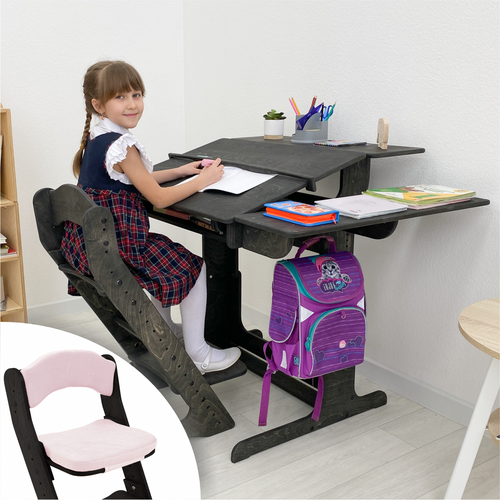 Парта для школьника, растущая парта и растущий стул, с подушкой, комплект, окрашен маслом