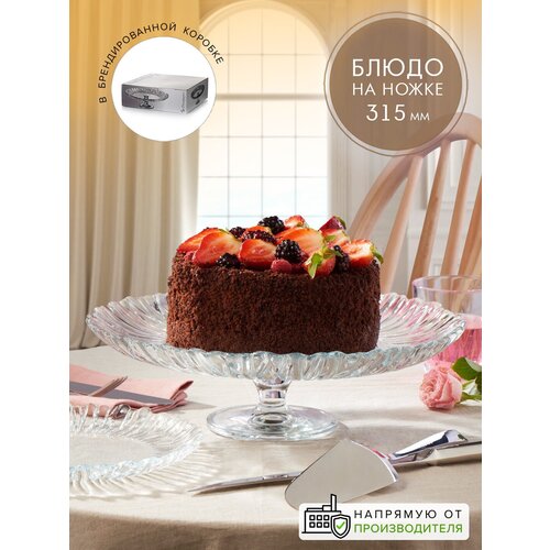 Стеклянная тортовница на ножке бренда Pasabahce с рельефным краем. Диаметр тортницы 315 мм, высота 96 мм. Тарелка на ножке прекрасно подойдет для сервировки праздничного стола, можно использовать для подачи тортов и куличей, пирожных и кексов, фруктов и овощей, сыра и мясных деликатесов, нарезки и блинов, желе и печенья, конфет и прочих десертов. Высокое блюдо подходит для пасхальной сервировки яиц и кулича, пасхи и прочих закусок. Менажница изготовлена из упрочненного натрий-кальций-силикатного стекла с повышенной термостойкостью. Поэтому тарелка более устойчива к неожиданному перепаду температур, бою и царапинам. Блюдо можно использовать в микроволновой печи, мыть в ПММ и хранить в холодильнике. Тортовница прослужит дольше, благодаря повышенной прочности. Поставляется в брендированной упаковке. Блюдо подходит для регулярного использования как дома, в квартире, так и на даче или в саду. Тортница из стекла на ножке - это отличный выбор для полезного и практичного подарка на любой праздник: день рождения и 8 марта, новый год и Рождество, 14 февраля и новоселье, годовщину и юбилей для мамы и бабушки, сестры и жены, подруги и девушки, ваших близких людей и родственников, коллег и друзей.