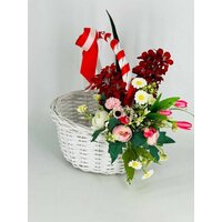 Купить Пасхальная подарочная корзина с искусственными цветами с доставкой по всей России.