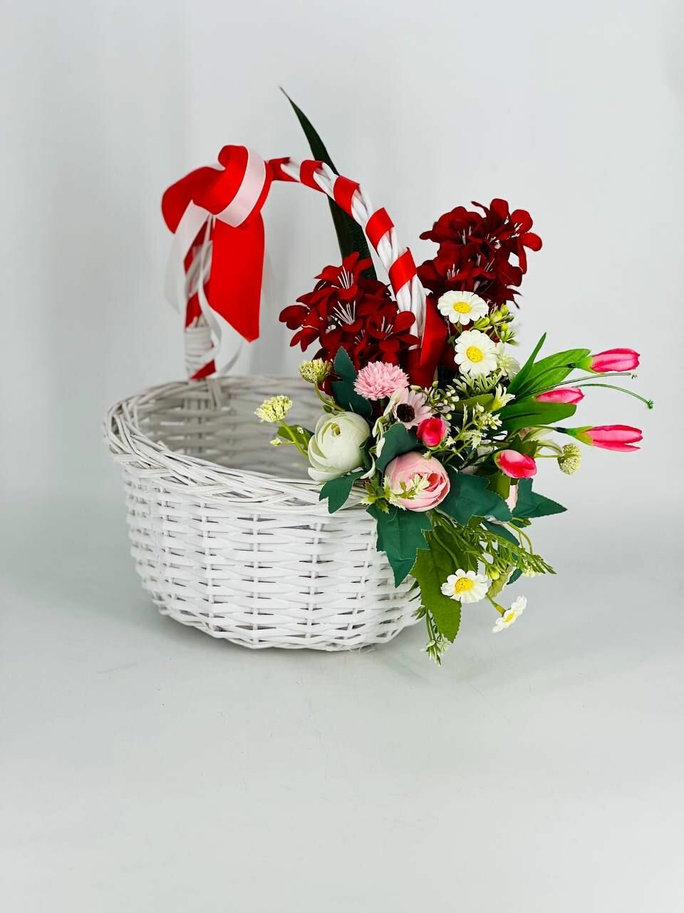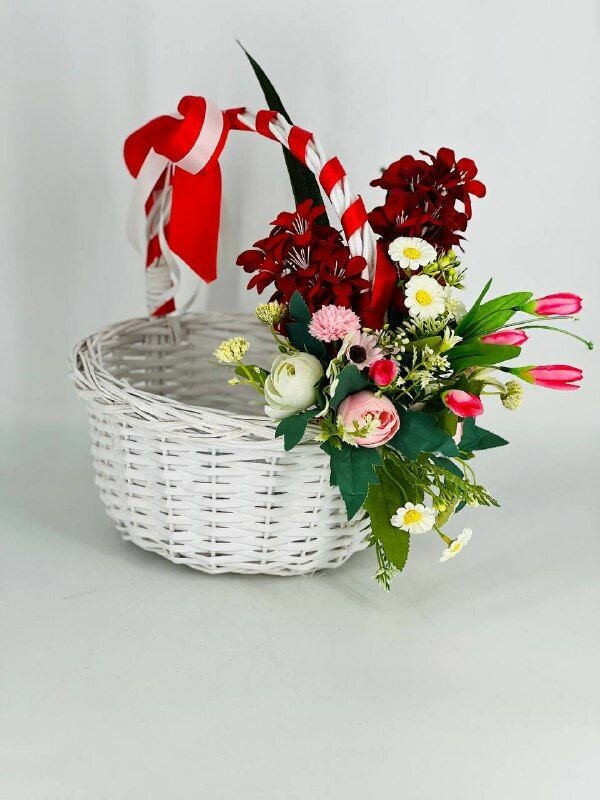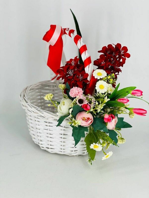 Пасхальная корзина с искусственными цветами, корзинка с цветами для подарка. Подарок на Пасху