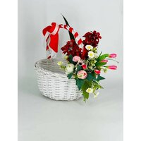 Подарочная пасхальная корзина с искусственными цветами премиум. Корзинка для подарка. Подарок на Пасху