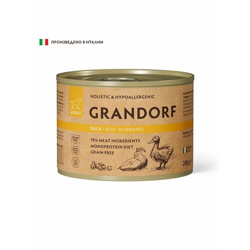 Монопротеиновый паштет GRANDORF из утки с грушей и черникой для взрослых собак всех пород. Здоровое питание для вашего питомца без компромиссов!