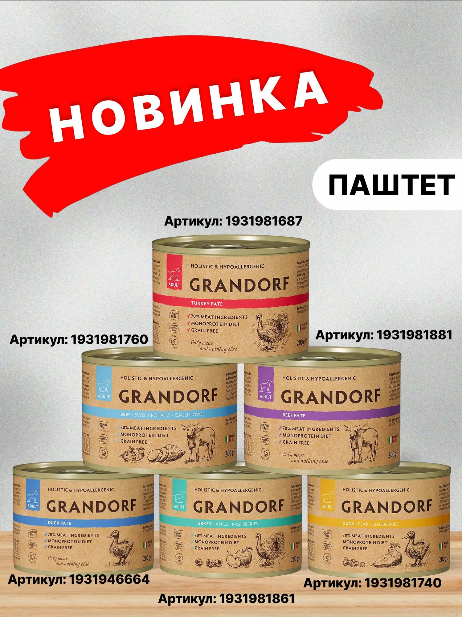 Паштет Grandorf из утки для собак всех пород. В упаковке 6шт: сравнение цен, характеристики, фото, актуальное наличие и цены.